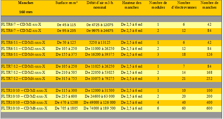 From 70 to 250 m3/h per m2 of filter surface area